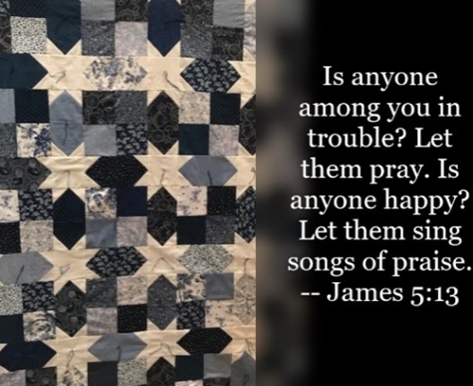 For many years now, I also have taken my passion for making quilts and participated in a program called Prayers and Squares. This organization asks quilters to sew together a quilt top. The top is “sandwiched” together with batting and backing. A heavy thread is used to take stitches thru the quilt layers, and the ends are left free to be tied with a square knot. As each knot is tied, a silent prayer is said for someone in special need, who then receives the quilt. Every time I make one of these Prayer Quilts I thank God he has given me this gift of quilting to help others.