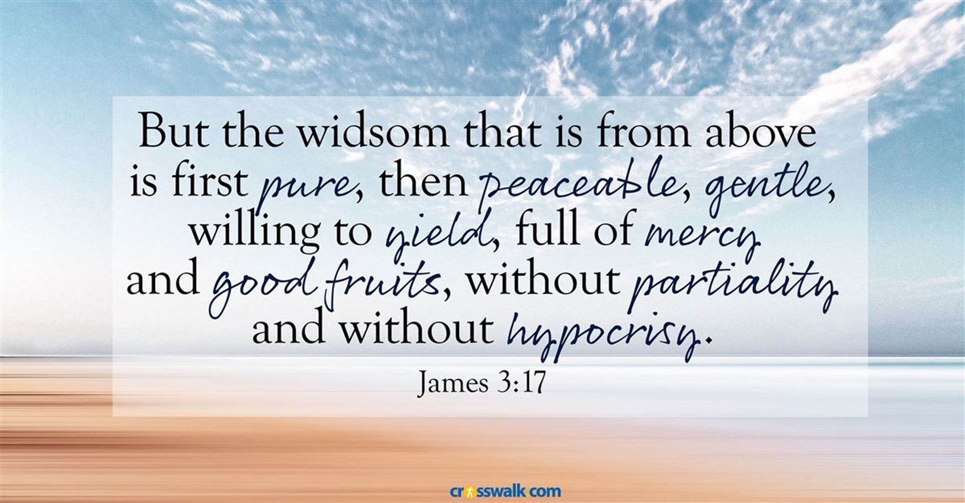 Gracious God, you are wise beyond anything I can imagine. Your wisdom brought the universe into existence. It stretches across space and time. Nothing hides from your wisdom. Thank you, dear Lord, for being willing to share your wisdom with me. I do need “wisdom from above.” I confess that sometimes I act as if I have all the wisdom I need. But then, Lord, I confront situations that show me the truth. My wisdom is inadequate at best, worldly and sinful, at worst. In these times I realize the truth. I need your wisdom, Lord. I need it each day, in each situation, in each relationship.
