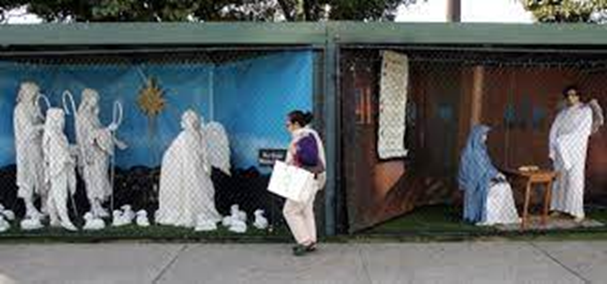 Sadly, as the years passed, there were protests by an atheist group, and some of the booths were destroyed by vandalism. In 2015, a ban was placed on the displays. The churches got together and decided to erect them on private property. Calvary Baptist Church, our largest African American church in Santa Monica, now hosts the displays each year. Donations are desperately being sought by the community of believers to keep the tradition alive.