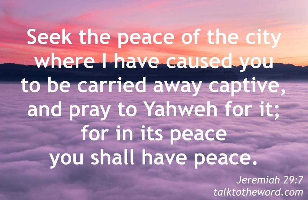 Dear Lord, help me not to feel sorry for myself because of where you’ve called me to live my life. Whether I’m living in Jerusalem or Babylon, you’ve called me to yourself, to love you, to trust you, to obey you. Help me to see that you’ve also called me to more than that. You’ve called me to make the best of whatever exile I find myself in, to bless those around me, however foreign they may seem to me. Amen.