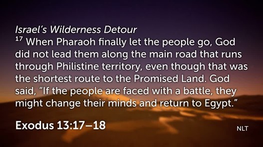 The path to the promised land seemed straightforward, but it cut right through enemy territory. God knew better than they did what they were up against and the state of their hearts as well as the strength of their arms. He decided to take them the long way around (Exodus 13:17-18). Our contemporary culture values expediency, but the story in the wilderness indicates that shorter is not necessarily better. In my life’s journey, as I move toward my goals, does it seem as if God is taking me the long way round? How do I feel about that? God was up to something far beyond just getting the children of Israel from point A to point B. On their pilgrimage through the wilderness, He wanted to shape them on the way. Author Daniel McGregor writes: “It is impossible to overestimate the importance of the Israelites’ wilderness experience to biblical history. The wilderness wandering was the formative experience for the Israelites, repeatedly referenced throughout Scripture. From the time in the wilderness came the Law, a way of worship, and a culture distinct from their neighbors.”