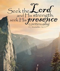 1 Chronicles 16:11 tells us that we should seek God and His strength by continually seeking His presence. When we seek the Lord and worship Him, we find strength to deal with the problems we are bound to encounter in this life. Continually seeking His presence– this means not half-heartedly seeking God – occasionally saying a prayer to ask for something we desire — but fully and continually finding ways to know God, praise God and express gratitude to Him for all we have. Taking time to be with God to discern the plan He might have for our lives — ways to serve others and grow His kingdom. When we lose our focus on God, we deny ourselves the very strength that God provides to deal with our needs in life. To seek the Lord we need to work to prepare our hearts, minds and souls to focus on God and gain the strength only He can provide.